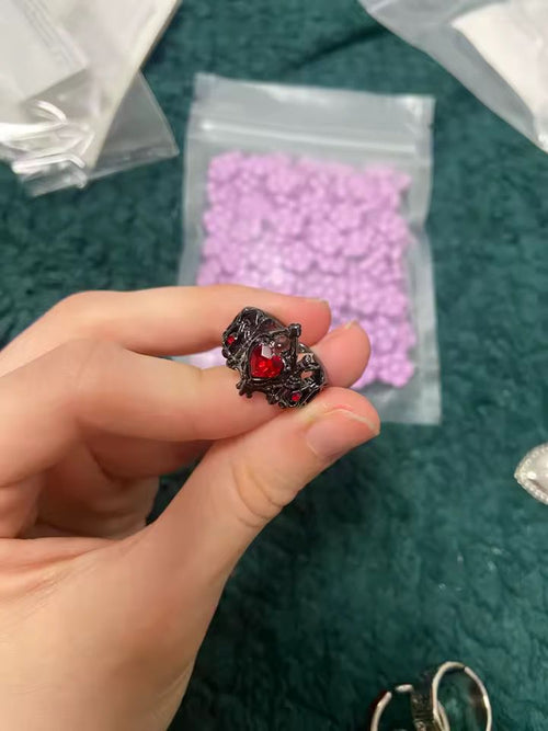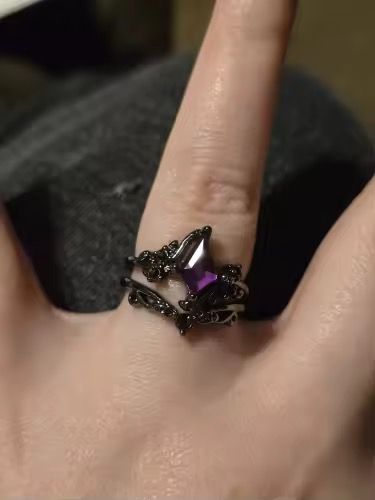 Pedí los anillos de pareja y son preciosos, el morado de calavera brilla mucho y los detalles góticos me encantaron